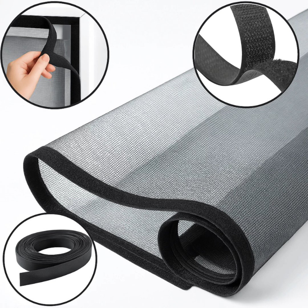 A tela pode ser ajustada conforme o tamanho, funcionando em diversos tipos de janelas de vidro.